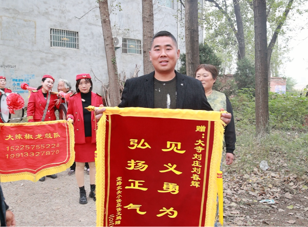 ?? 一面锦旗,一份感恩?! ?0月12日,郸城县宜路镇北头行政村小侯岗村村民李铁环将一面写着“见义勇为 弘扬正气”的锦旗,郑重送到大寺刘庄村村民刘春辉家中,紧紧握住他的手哽咽道:“恩人救了俺家两条命,这恩情一辈子忘不了!”这份质朴的谢意,源于三天前那...详细>>