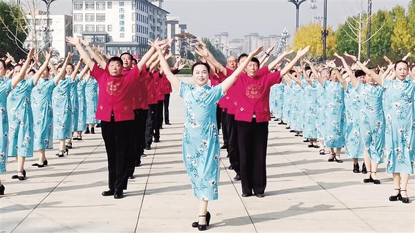10月28日,“九九重阳节”淮阳荷花杯交流展演活动在淮阳区伏羲文化广场温情启幕。来自全市的200余名中老年参与者伴着轻柔的节奏舒展动作,在欢声笑语中共度传统佳节。记者 郑伟元